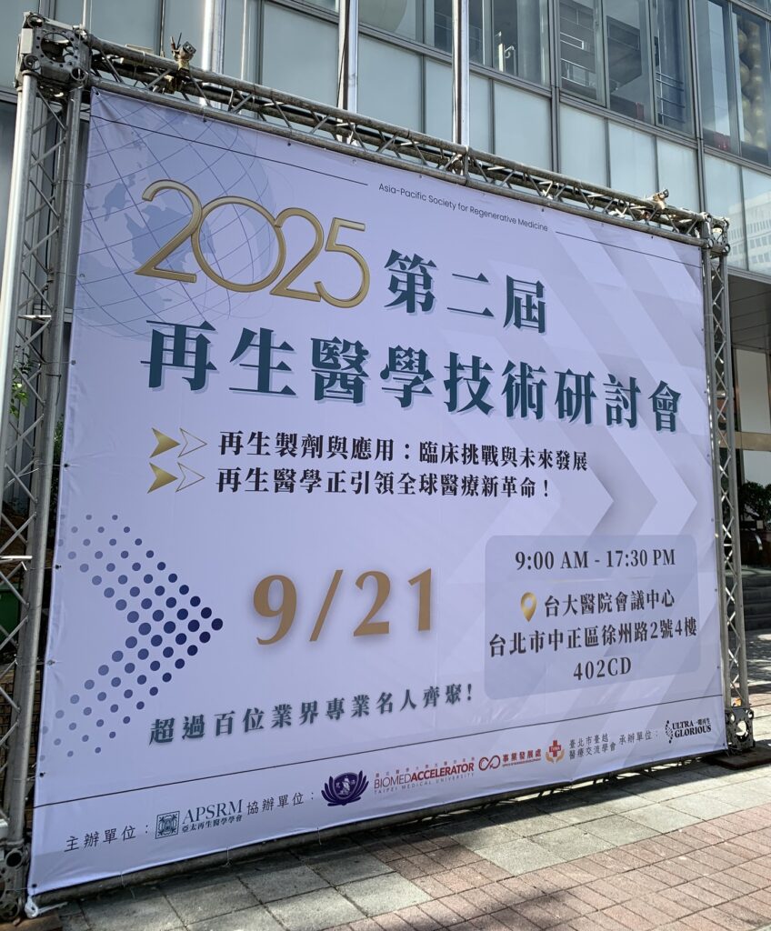 「主題:再生製劑與醫材應用;臨床挑戰與未來發展。議程設計涵蓋七大亮點:從造血幹細胞到間質幹細胞的臨床應用、精準醫療與再生醫學的新曙光、再生醫學法規專題:從研究到臨床的合規挑戰、外泌體與幹細胞跨三代人應用機轉、精準檢測與個人化照護策略、霧化器於外泌體之運用、再生製劑條例與相關法規最新說明。」